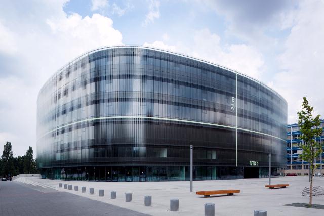 Novostavba budovy Národní technické knihovny v areálu pražských vysokých škol technických je navržena na půdorysu oválného čtverce. První a druhé nadzemní podlaží obsahuje doplňkové služby (kavárna, výstavní a konferenční sál, vstupní hala). Ve třetím až šestém nadzemním podlaží se nachází vlastní knihovna. Stavba má výrazný vnější skleněný plášť. Uvnitř budovy je umělecké dílo od Dana Perjovschi.