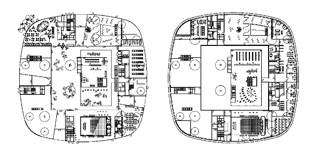 Architektura budovy je reakcí na místo, na kterém je budova postavena a na typologické požadavky provozu. Uzavřená forma s konvexními tvary vyzařuje pocit soustředění a jistotu pevného bodu. Oproti čistému čtverci nebo kruhu je možné se uvnitř dispozice chovat svobodně a přitom neztratit pocit dobré orientace. Ten je navíc podporován vložením podélné dvorany s horním osvětlením. Jako nosná konstrukce budovy je zvolen velkorozponový betonový monolitický skelet o rozpětí 15 x 15m, který omožňuje výraznou variabilitu vnitřního uspořádání. Otevřenost knihovny jako veřejné instituce je vyjádřena pojetím interiéru jako jednoho organismu. Studijní místa jsou navržena v různých polohách s různými typy sezení, což návštěvníkovi umožňuje najít si místo podle své nálady nebo nátury. Zdroj: autorská zpráva architektonického atelieru Fotografie: Andrea Lhotáková, archiv architektonického atelieru ![]()